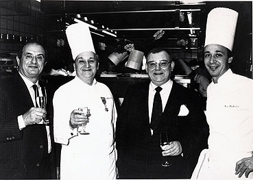 Eine Aufnahme von historischem Wert (von rechts nach links): Pierre Haeberlin †, Hans Stucki † (2 Michelin-Sterne, ex Restaurant «Bruderholz chez Stucki», Basel), Paul Haeberlin † und Paul Bocuse †. Foto J.-P. Lienhard, Basel © 2011
