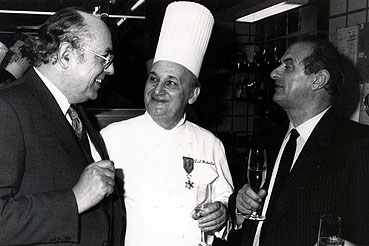 (Von rechts nach links): Marc Haeberlin, der Sohn von Paul, Pierre Romeyer (Président-fondateur de la Communauté Européenne des Cuisiniers, Bruxelles) †, Paul Haeberlin † und Paul Bocuse †. Foto J.-P. Lienhard, Basel © 2011