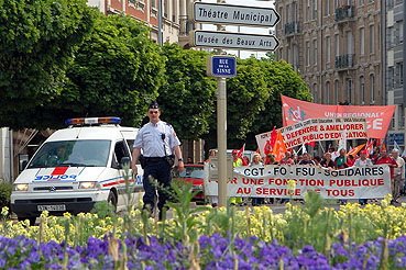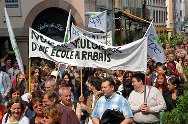 Rund die Hälfte der französischen Lehrer verschiedenster Stufen und Beamte der öffentlichen Dienste streikten und demonstrierten am Donnerstag, 15. Mai 2008 - rund 1500 davon in Mulhouse