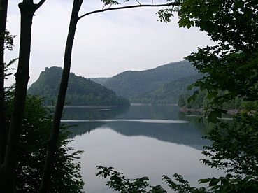 Der traumhaft-romantische See von Kruth-Wildenstein unterhalb des Schlossberges, dem Spielort - die Aussicht kann einem buchstäblich den Atem rauben! Foto: Marbach-et-Schwebel, St-Amarin © 2008