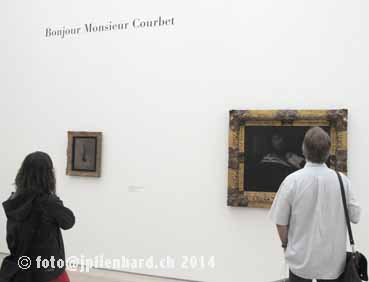 Sinnige Begrüssung zu Beginn des Rundgangs in der Courbet-Ausstellung: Der Titel ist auch der gleichnamige Titel eines der wichtigsten Courbet-Gemälde. Das hier ist es nicht, sondern es heisst: «Selbstbildnis mit Pfeife»… foto@jplienhard.ch © 2014