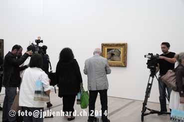 Zwei Fragen nur wurden an der Pressekonferenz gestellt, aber die Antworten waren aufschlussreich: Courbet war nicht verheiratet, war aber der einzige Bub unter vier Schwestern. Seine «Mätresse jedoch war die Malerei»… Warum so knallweisse Wände, war die zweite Frage. Sämi Keller erklärte, dass umfangreiche Test gemacht wurden, bevor man sich entschied, sie weiss bemalt zu lassen, zumal die Fondation ja ein Museum der Moderne sei. Tatsächlich aber brilliert das Weiss derart, dass die sowieso schon dunklen und durch das unglücklich angebrachte Firniss, das damals zur Konservation der Farben üblich war, noch dunkler und zumal glänzend macht, grosse Anforderungen an das Auge und an das Vorstellungsvermögen stellt.