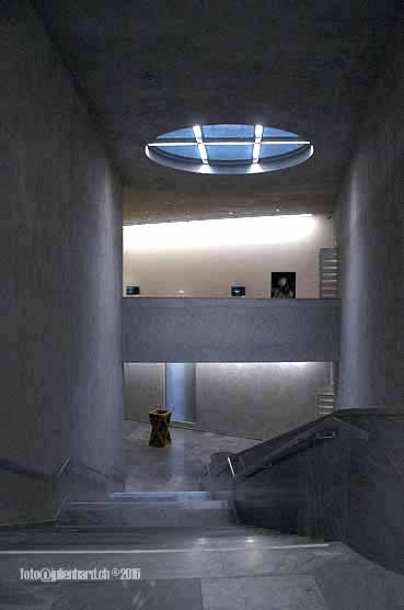 Beim ziemlich jugendlich wirkenden Emanuel Christ kann man sich gut vorstellen, dass er sich wenig Gedanken über das Durchschnittsalter der Kunstinteressierten machte. Die unendlichen langen Treppen machten schon der immer noch beweglichen, aber längst pensionierten Direktorin des Basler Verkehrsvereins zu schaffen, bis sie durch Hinweis auf die unauffällig im grauen Marmor verzinkten Handläufe aufmerksam gemacht wurde. Fürs Auge sind die wuchtigen Treppen imposante architektonische Entwürfe, für alte Beine aber eine Zumutung, zumal die Behinderten-Lifte aus dem Blickfeld gehalten sind.