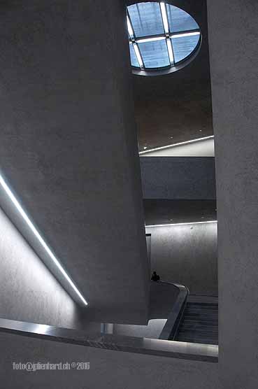 Mit dieser Treppe geht es vom Altbau runter zum Tunneldurchgang zum Neubau. © foto@jplienhard.ch 2016