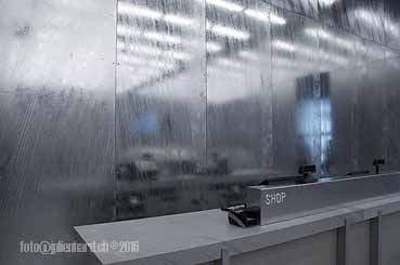 Auch die Wände im Empfangsbereich sind aus feuerverzinktem Metall. © foto@jplienhard.ch 2016