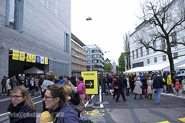Grossandrang des Publikums am ersten Gratistag des wiedereröffneten Kunstmuseums Basel am Sonntag, 17. April 2016. Links der Eingang zum Neubau, der aber an diesem Tag gesperrt war, weil man die Leute zunächst via Altbau durchschleusen wollte, bevor sie unteriridisch in den Neubau steigen konnten. © foto@jplienhard.ch 2016