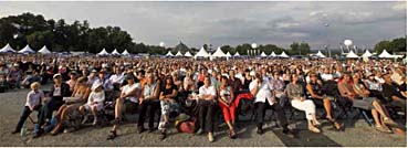 Rund 40'000 Zuschauer strömten zur Live-Übertragung auf dem 90-Quadratmeter-Grossbildschirm auf der Bayreuther Festspielwiese. 20'000 waren im Durchschnitt über den ganzen Tag verteilt und verweilten im Schnitt länger als im Vorjahr. Internauten aus 40 Ländern sahen sich den Live-Stream an. Foto Stefan Obermaier © Siemens Festspielnacht 2009