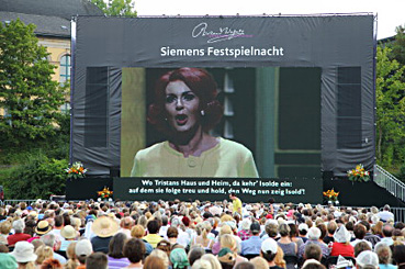 In Zusammenhang mit den Bayreuther Festspielen 2009 ist es wiederum die Siemens-Stiftung, die die Finger dabei oder darin hat. Es ist zwar das zweite Mal, dass Siemens eine Aufführung der Bayreuther Wagner-Festspiele, der sogenannten Siemens-Festspielnacht, in Bayreuth auf einen öffentlichen Platz auf Grossleinlandwand und kostenlos für die Zuschauer live vom grünen Hügel herab überträgt. Doch dieses Jahr ist es das erste Mal in der Geschichte und in der Geschichte dieser Technik, dass die Aufführung von «Tristan und Isolde» nicht nur live auf den «Festspielplatz» in Bayreuth übertragen wurde, sondern auch live via Internet.