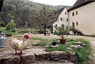 Ab 11 Uhr, diesen 1.-Mai-Montag 2006, ist das Fernex‘sche Schloss wie immer herausgeputzt, und wenns nicht regnet, dann ist auch draussen gedeckt. Die Riesenscheune beherbergt eine ganze Geissen-Kolonie, deren Milch Etienne Fernex für seine berühmten Bio-Geissenkäse verwendet. Doch diese Käslein sind nicht das einzige Leckere auf dem Speisezettel: Ab 12.30 Uhr gibts grillierte Würste mit «Hardepfel-Salat», einen Käseteller aus verschiedenen Bio-Käsen, Kuchen, Desserts, Café, Fruchtsäfte sowie elsässischen Demeter-Wein vom Winzer J.-P. Frick aus dem berühmten Weinort Pfaffenheim und Bordeaux von B. Chort.