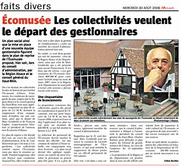 «Journal l'Alsace» vom Mittwoch, 30. August 2006: «Die Behördenvertreter im Vorstand fordern die Abdankung von Direktion und Präsidium»