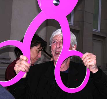 Der weltberühmte Elsässer beim «Durchschneiden» des Einweihungs-Bandes für «sein» Museum in Strassburg. Im Hintergrund: Fabienne Keller, «Maire de Strasbourg».