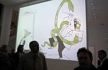 Die «Augenbrille» ist das «Logo» der Eröffnungs-Ausstellung - Tomi begrüsste damit seine Vernissagen-Gäste. Alle Fotos: J.-P. Lienhard, Basel © 2007