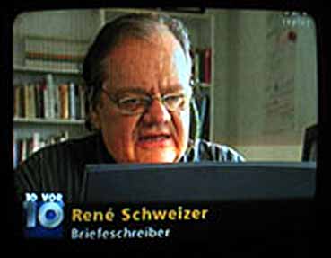 Mit seinen Nonsense-Briefen berühmt geworden, mit seinem Theaterstück «Die Säuferin» seelische Abgründe ausgelotet: René Schweizer bei einer Lesung im Nachrichtenmagazin «10 vor 10» des Schweizer Fernsehens.