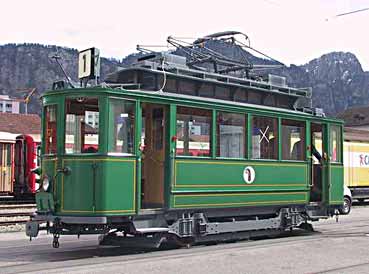 Das grasgrüne Basler Drämmli in den Bündner Alpen von Landquart: Frisch gewaschen, neu gestrichen, neu geboren… Fotos: Tam-Club Basel © 2006